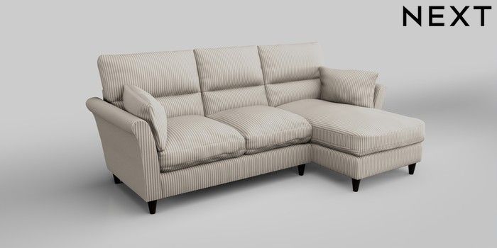 6.12.1 Buy Hartley Highback Relaxed Sit Medium Sofa Chaise - Right Hand Chenille Stripe Natural Low Conical - Dark from the Next UK online shop Click here to use our accessible website