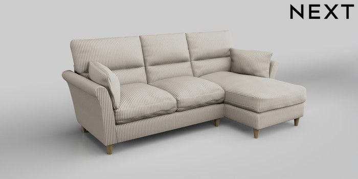 6.12.1 Buy Hartley Highback Relaxed Sit Medium Sofa Chaise - Right Hand Chenille Stripe Natural Low Conical - Light from the Next UK online shop Click here to use our accessible website