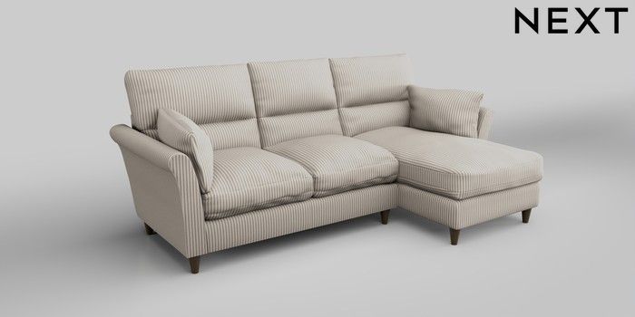 6.12.1 Buy Hartley Highback Relaxed Sit Medium Sofa Chaise - Right Hand Chenille Stripe Natural Low Conical - Mid from the Next UK online shop Click here to use our accessible website