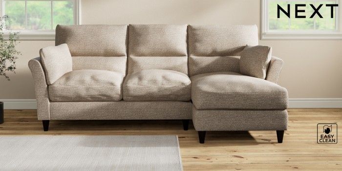 7.3.1 Buy Hartley Highback Relaxed Sit Medium Sofa Chaise - Right Hand Chunky Boucle Easy Clean Mid Natural Low Conical - Dark from the Next UK online shop