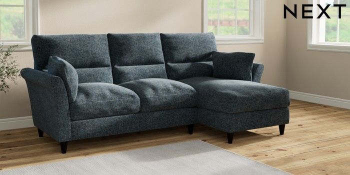 7.2.10 Buy Hartley Highback Relaxed Sit Medium Sofa Chaise - Right Hand Chunky Chenille Dark Navy Blue Low Conical - Dark from the Next UK online shop Click here to use our accessible website