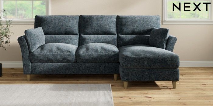 7.3.1 Buy Hartley Highback Relaxed Sit Medium Sofa Chaise - Right Hand Chunky Chenille Dark Navy Blue Low Conical - Light from the Next UK online shop