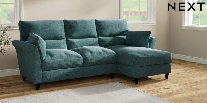 7.2.10 Buy Hartley Highback Relaxed Sit Medium Sofa Chaise - Right Hand Chunky Chenille Mid Teal Green Low Conical - Dark from the Next UK online shop Click here to use our accessible website