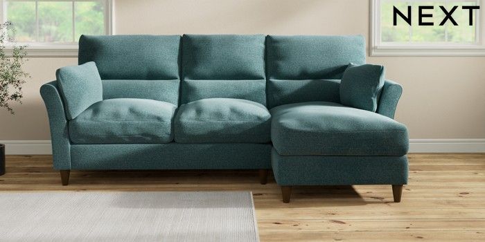 7.3.1 Buy Hartley Highback Relaxed Sit Medium Sofa Chaise - Right Hand Chunky Chenille Mid Teal Green Low Conical - Mid from the Next UK online shop