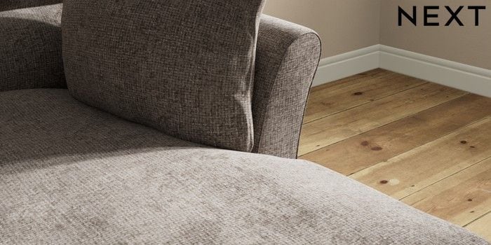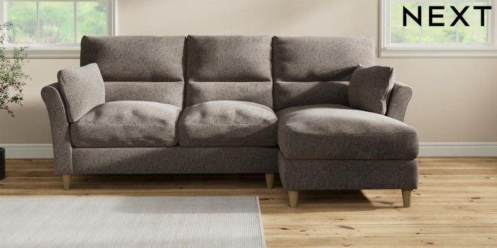 7.3.1 Buy Hartley Highback Relaxed Sit Medium Sofa Chaise - Right Hand Chunky Chenille Mink Brown Low Conical - Light from the Next UK online shop