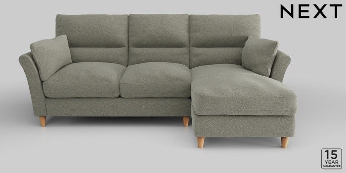 6.12.1 Buy Hartley Highback Relaxed Sit Medium Sofa Chaise - Right Hand Chunky Marl Light Olive Green Low Conical - Light from the Next UK online shop Click here to use our accessible website