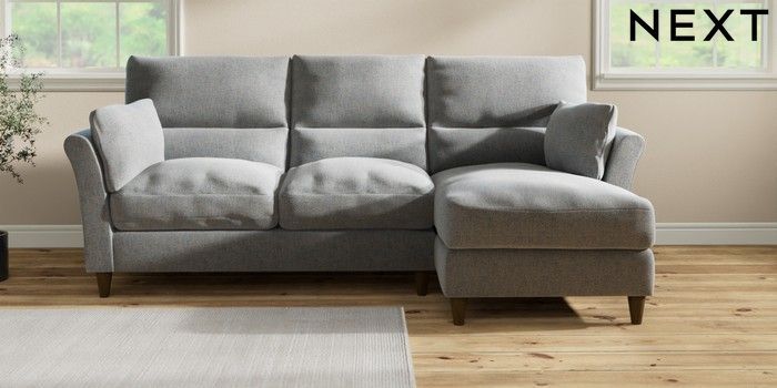 7.3.1 Buy Hartley Highback Relaxed Sit Medium Sofa Chaise - Right Hand Chunky Marl Mid Grey Low Conical - Mid from the Next UK online shop