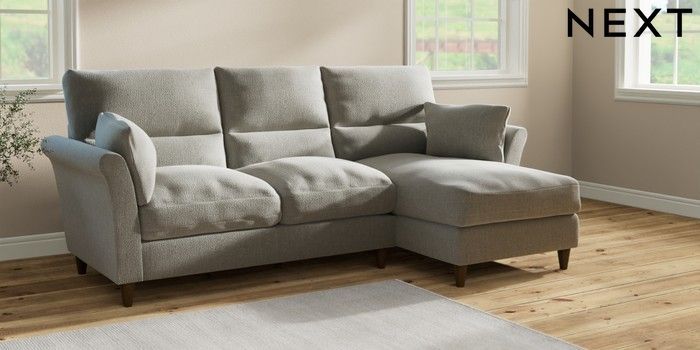 7.2.10 Buy Hartley Highback Relaxed Sit Medium Sofa Chaise - Right Hand Chunky Texture Dove Low Conical - Mid from the Next UK online shop Click here to use our accessible website