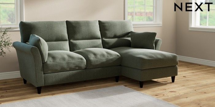 7.2.10 Buy Hartley Highback Relaxed Sit Medium Sofa Chaise - Right Hand Chunky Texture Mid Forest Green Low Conical - Dark from the Next UK online shop Click here to use our accessible website