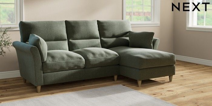 7.2.10 Buy Hartley Highback Relaxed Sit Medium Sofa Chaise - Right Hand Chunky Texture Mid Forest Green Low Conical - Light from the Next UK online shop Click here to use our accessible website