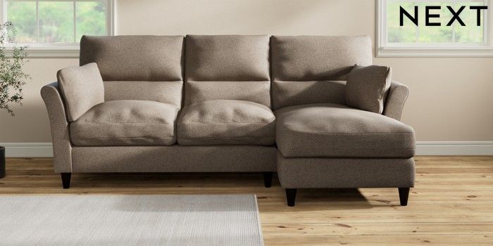 7.3.1 Buy Hartley Highback Relaxed Sit Medium Sofa Chaise - Right Hand Chunky Weave Dark Natural Low Conical - Dark from the Next UK online shop