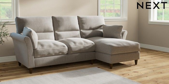 7.2.10 Buy Hartley Highback Relaxed Sit Medium Sofa Chaise - Right Hand Chunky Weave Dove Grey Low Conical - Mid from the Next UK online shop Click here to use our accessible website