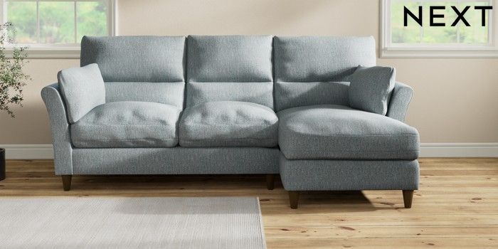 7.3.1 Buy Hartley Highback Relaxed Sit Medium Sofa Chaise - Right Hand Chunky Weave Mid Blue Low Conical - Mid from the Next UK online shop