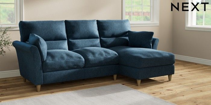 7.2.10 Buy Hartley Highback Relaxed Sit Medium Sofa Chaise - Right Hand Cotswold Chenille Dark Blue Low Conical - Light from the Next UK online shop Click here to use our accessible website