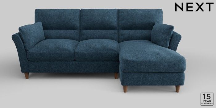 6.12.1 Buy Hartley Highback Relaxed Sit Medium Sofa Chaise - Right Hand Cotswold Chenille Dark Blue Low Conical - Mid from the Next UK online shop Click here to use our accessible website