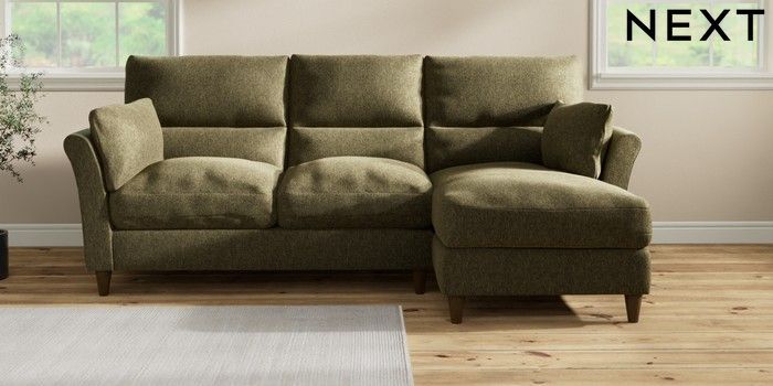 7.3.1 Buy Hartley Highback Relaxed Sit Medium Sofa Chaise - Right Hand Cotswold Chenille Dark Green Low Conical - Mid from the Next UK online shop
