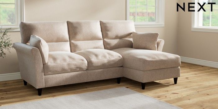 7.2.10 Buy Hartley Highback Relaxed Sit Medium Sofa Chaise - Right Hand Cotswold Chenille Light Natural Low Conical - Dark from the Next UK online shop Click here to use our accessible website