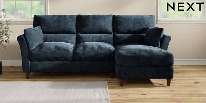 7.3.1 Buy Hartley Highback Relaxed Sit Medium Sofa Chaise - Right Hand Distressed Velour Midnight Blue Low Conical - Mid from the Next UK online shop