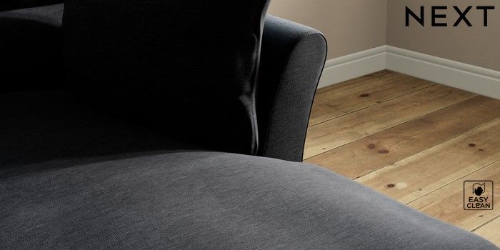 7.3.1 Buy Hartley Highback Relaxed Sit Medium Sofa Chaise - Right Hand Fine Chenille Easy Clean Black Low Conical - Dark from the Next UK online shop
