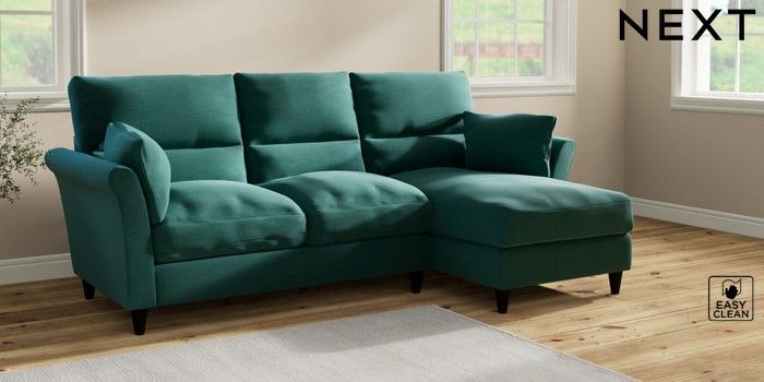 7.2.10 Buy Hartley Highback Relaxed Sit Medium Sofa Chaise - Right Hand Fine Chenille Easy Clean Dark Juniper Green Low Conical - Dark from the Next UK online shop Click here to use our accessible website