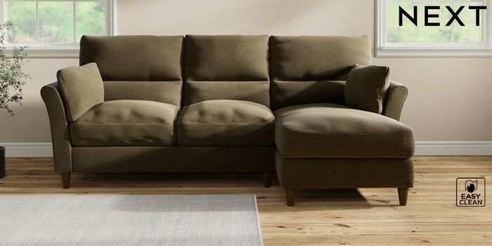 7.3.1 Buy Hartley Highback Relaxed Sit Medium Sofa Chaise - Right Hand Fine Chenille Easy Clean Dark Moss Green Low Conical - Mid from the Next UK online shop