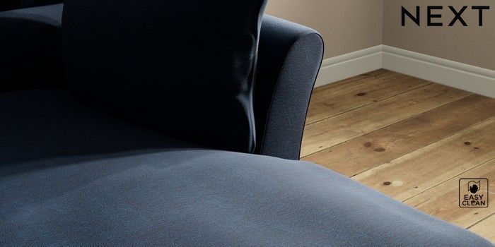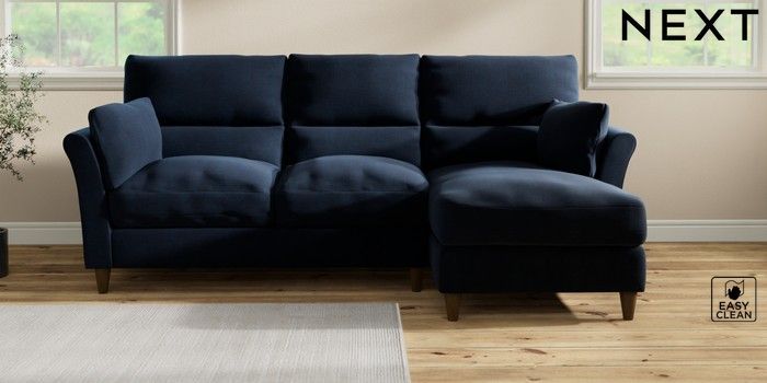 7.3.1 Buy Hartley Highback Relaxed Sit Medium Sofa Chaise - Right Hand Fine Chenille Easy Clean Dark Navy Blue Low Conical - Mid from the Next UK online shop