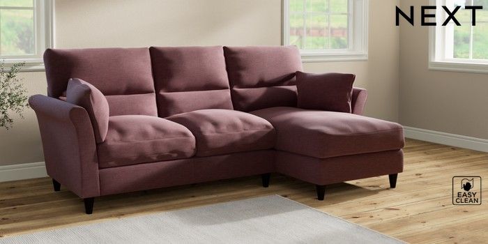 7.2.10 Buy Hartley Highback Relaxed Sit Medium Sofa Chaise - Right Hand Fine Chenille Easy Clean Mid Mulberry Purple Low Conical - Dark from the Next UK online shop Click here to use our accessible website