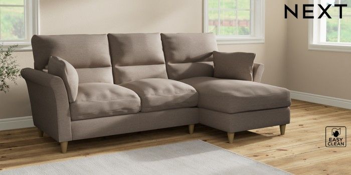 7.2.10 Buy Hartley Highback Relaxed Sit Medium Sofa Chaise - Right Hand Fine Chenille Easy Clean Mid Taupe Brown Low Conical - Light from the Next UK online shop Click here to use our accessible website