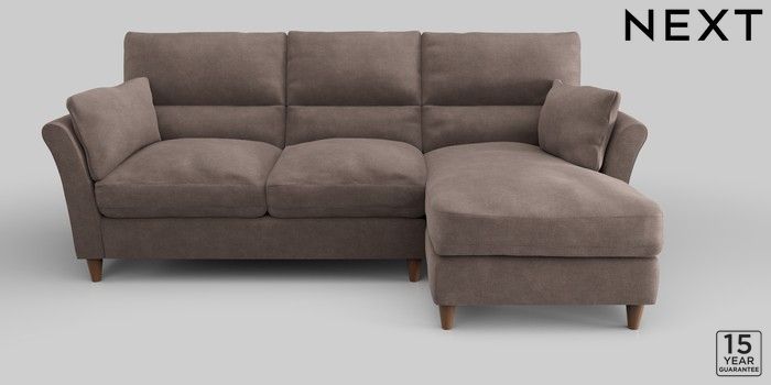 6.12.1 Buy Hartley Highback Relaxed Sit Medium Sofa Chaise - Right Hand Luxe Chenille Mink Brown Low Conical - Mid from the Next UK online shop Click here to use our accessible website