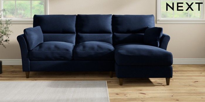 7.3.1 Buy Hartley Highback Relaxed Sit Medium Sofa Chaise - Right Hand Luxe Chenille Navy Blue Low Conical - Mid from the Next UK online shop
