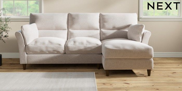 7.3.1 Buy Hartley Highback Relaxed Sit Medium Sofa Chaise - Right Hand Multi Weave Oyster Low Conical - Mid from the Next UK online shop