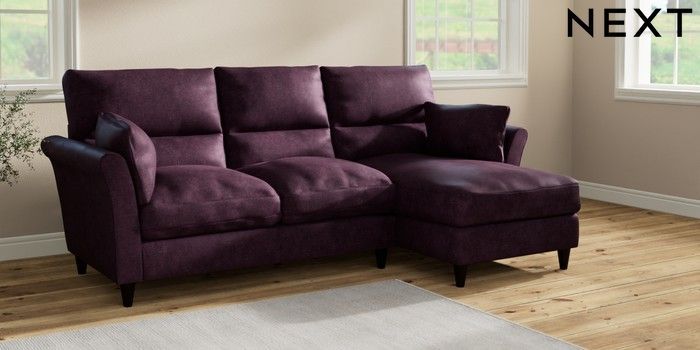 7.2.10 Buy Hartley Highback Relaxed Sit Medium Sofa Chaise - Right Hand Plush Chenille Dark Plum Purple Low Conical - Dark from the Next UK online shop Click here to use our accessible website