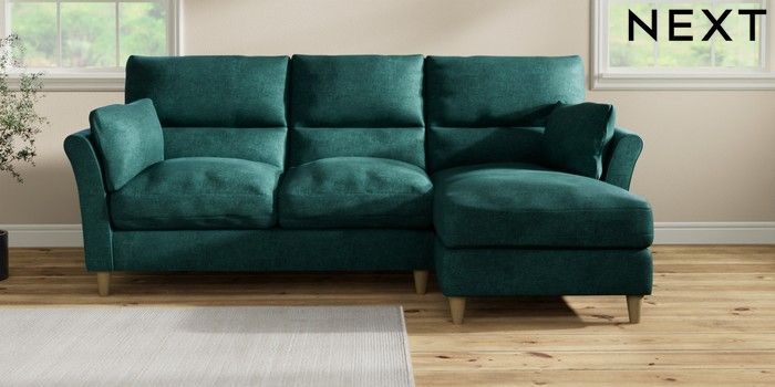 7.3.1 Buy Hartley Highback Relaxed Sit Medium Sofa Chaise - Right Hand Plush Chenille Dark Teal Green Low Conical - Light from the Next UK online shop