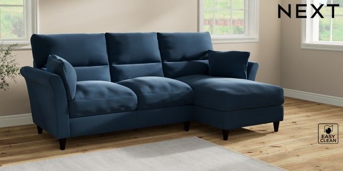 7.2.10 Buy Hartley Highback Relaxed Sit Medium Sofa Chaise - Right Hand Plush Velvet Easy Clean Airforce Blue Low Conical - Dark from the Next UK online shop Click here to use our accessible website