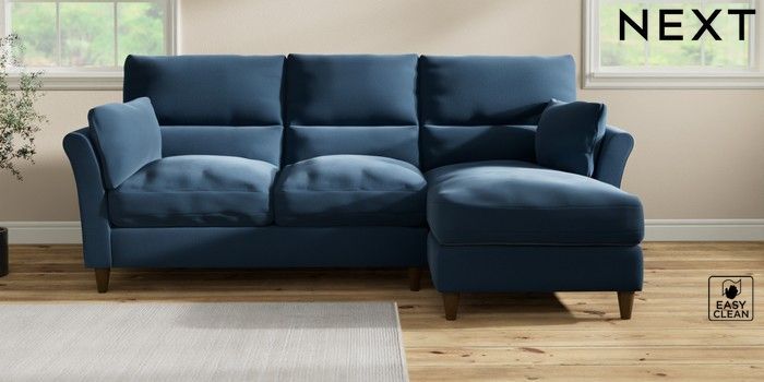 7.3.1 Buy Hartley Highback Relaxed Sit Medium Sofa Chaise - Right Hand Plush Velvet Easy Clean Airforce Blue Low Conical - Mid from the Next UK online shop