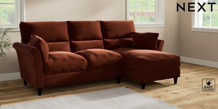 7.2.10 Buy Hartley Highback Relaxed Sit Medium Sofa Chaise - Right Hand Plush Velvet Easy Clean Ginger Orange Low Conical - Dark from the Next UK online shop Click here to use our accessible website