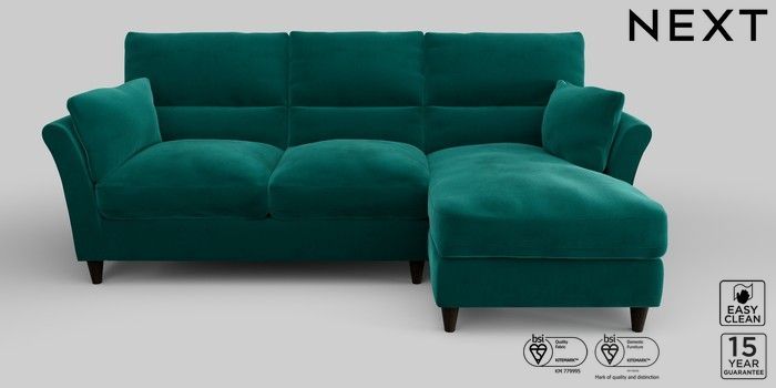 6.12.1 Buy Hartley Highback Relaxed Sit Medium Sofa Chaise - Right Hand Plush Velvet Easy Clean Juniper Green Low Conical - Dark from the Next UK online shop Click here to use our accessible website