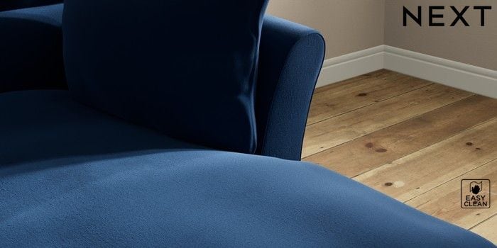 7.3.1 Buy Hartley Highback Relaxed Sit Medium Sofa Chaise - Right Hand Plush Velvet Easy Clean Navy Blue Low Conical - Mid from the Next UK online shop
