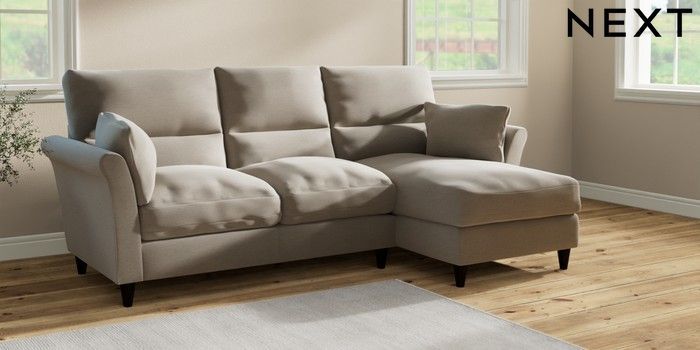 7.2.10 Buy Hartley Highback Relaxed Sit Medium Sofa Chaise - Right Hand Ripple Chenille Light Natural Low Conical - Dark from the Next UK online shop Click here to use our accessible website