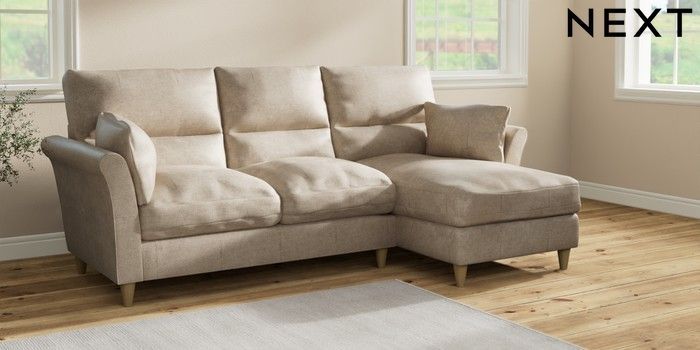 7.2.10 Buy Hartley Highback Relaxed Sit Medium Sofa Chaise - Right Hand Plush Chenille Light Natural Low Conical - Light from the Next UK online shop Click here to use our accessible website