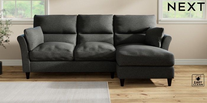 7.3.1 Buy Hartley Highback Relaxed Sit Medium Sofa Chaise - Right Hand Tweedy Blend Easy Clean Charcoal Grey Low Conical - Dark from the Next UK online shop