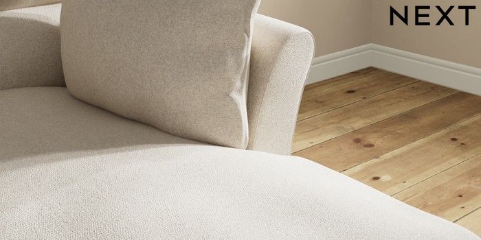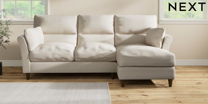7.3.1 Buy Hartley Highback Relaxed Sit Medium Sofa Chaise - Right Hand Tweedy Chenille Oyster Low Conical - Mid from the Next UK online shop