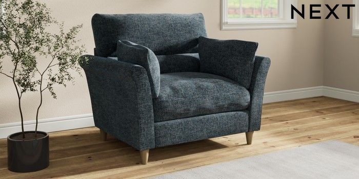 7.3.1 Buy Hartley Highback Relaxed Sit Snuggle Chunky Chenille Dark Navy Blue Low Conical - Light from the Next UK online shop