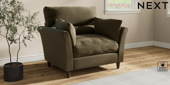 7.3.1 Buy Hartley Highback Relaxed Sit Snuggle Fine Chenille Easy Clean Dark Moss Green Low Conical - Mid from the Next UK online shop