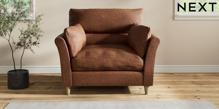 7.3.1 Buy Hartley Highback Relaxed Sit Snuggle Monza Faux Leather Easy Clean Chestnut Brown Low Conical - Light from the Next UK online shop Click here to use our accessible website