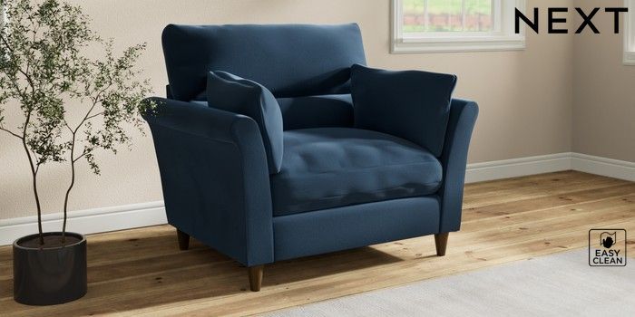 7.3.1 Buy Hartley Highback Relaxed Sit Snuggle Plush Velvet Easy Clean Airforce Blue Low Conical - Mid from the Next UK online shop