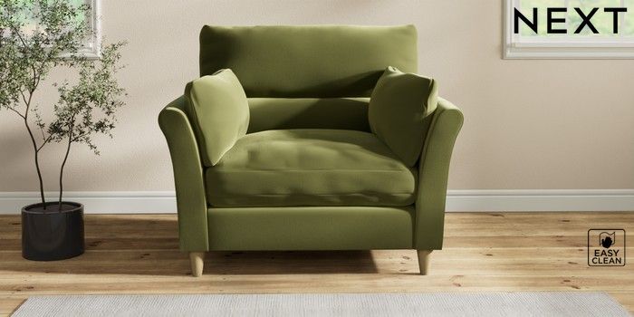 7.2.10 Buy Hartley Highback Relaxed Sit Snuggle Plush Velvet Easy Clean Mid Olive Green Low Conical - Light from the Next UK online shop Click here to use our accessible website