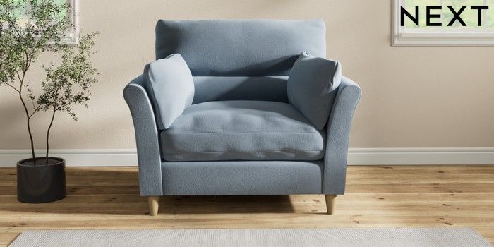 7.2.10 Buy Hartley Highback Relaxed Sit Snuggle Relaxed Linen Look Mid Blue Low Conical - Light from the Next UK online shop Click here to use our accessible website