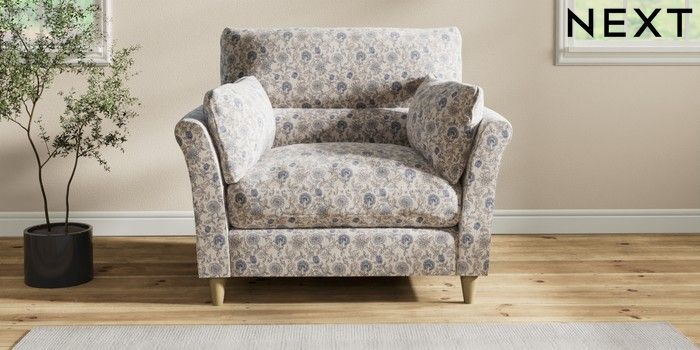 7.2.10 Buy Hartley Highback Relaxed Sit Snuggle Relaxed Linen Look Print Woodblock Floral Blue Low Conical - Light from the Next UK online shop Click here to use our accessible website