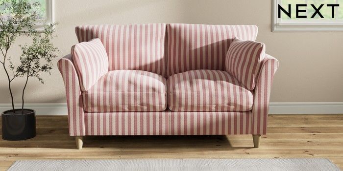 7.2.6 Buy Hartley Relaxed Sit 2 Seater Sofa Bold Chenille Stripe Dark Pink Low Conical - Light from the Next UK online shop Click here to use our accessible website